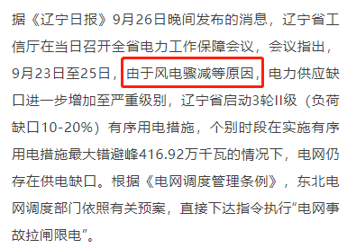 因为风电骤降,当时电力缺口已经到了严重级别,在电力面临崩溃的情况下,才被迫对工厂以外的人拉闸限电,从而影响到了居民。