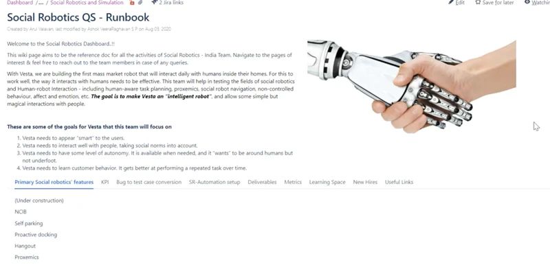 该文件中还说:“我们的目标是让 Vesta 成为一个‘智能机器人’,并允许与人进行一些简单但神奇的互动。”