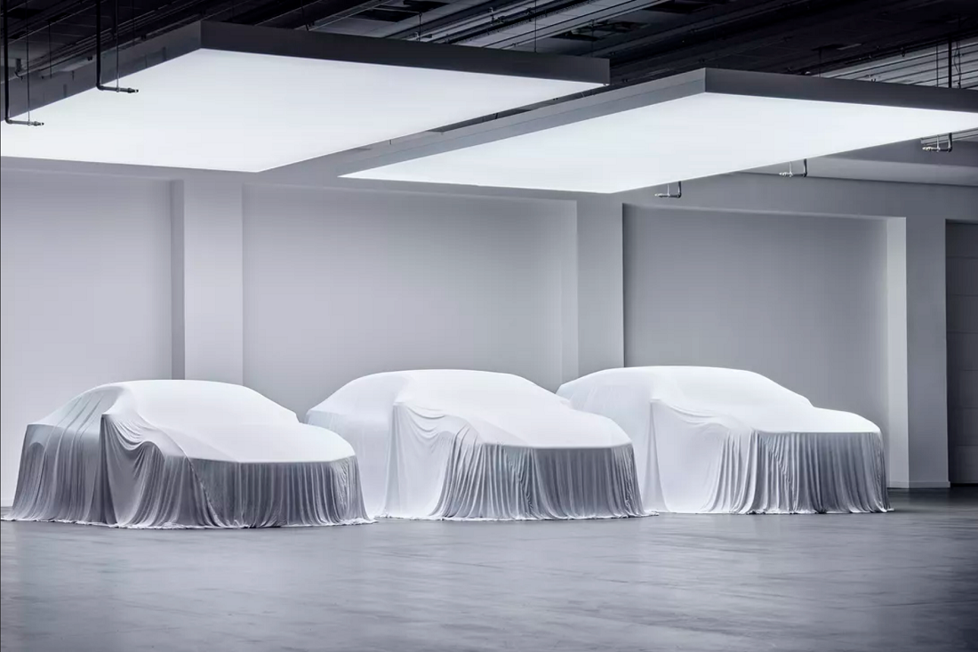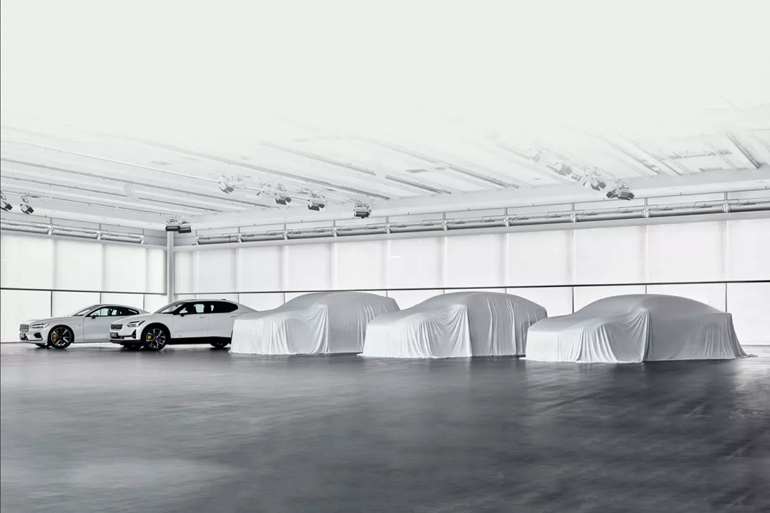 新预告图片中的第一张展示了现有的Polestar 1双门跑车和Polestar 2轿车以及被白布盖住的三辆汽车。中间的在就是即将推出的Polestar 3,它将是一款漂亮的SUV,采用的是下一代沃尔沃XC90将使用的SPA 2平台。最右边的是Precept量产版,它的外观跟概念车几乎相同。在3和Precept之间的则是Polestar新宣布的车型,关于这款车大家此前并未听到过任何消息。