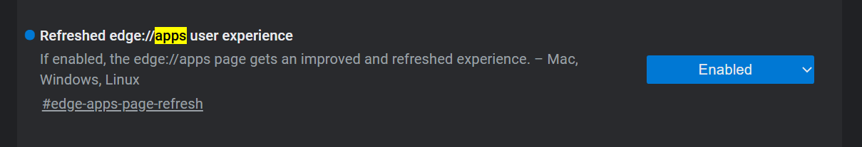 要试用新的应用程序页面,请在Edge Canary的配置页面中启用Refreshed Edge://apps user experience标记。
