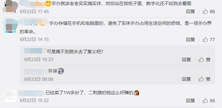 也有一些网友直言,数字手办不就是一堆数据,花钱买一堆数据,与手办本身“能摸能把玩”的性质,简直格格不入,妥妥的“智商税”。