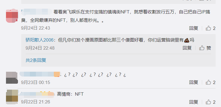 还是在《镇魂街》出售数字手办那条微博的评论区,有网友看透并指出了这些虚拟商品的本质——“NFT”