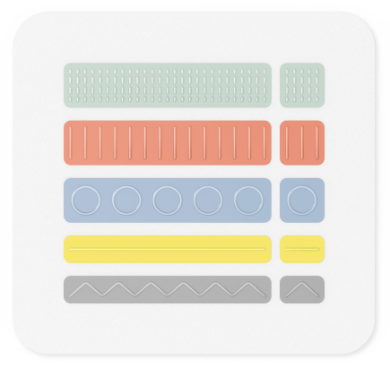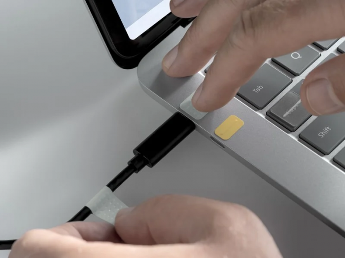 例如为方便线材连接笔电的接口指示器,在 Surface 自适应套件中,就包括了五组不同颜色/纹理的组合,用户可以自由对应不同的数据线及接口的粘贴位置,方便在连接线材时快速寻找对应的位置、键盘输入时根据触觉反馈找到对应的按键等用途。