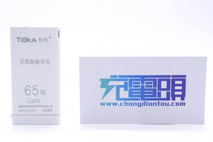 介绍来自铁甲的65W氮化镓无线智能充电器,充电器外壳为白色阻燃材质,正面印着非常丰富的产品信息,其中65W、GaN以及无线智能便是这款充电器的主要特点。