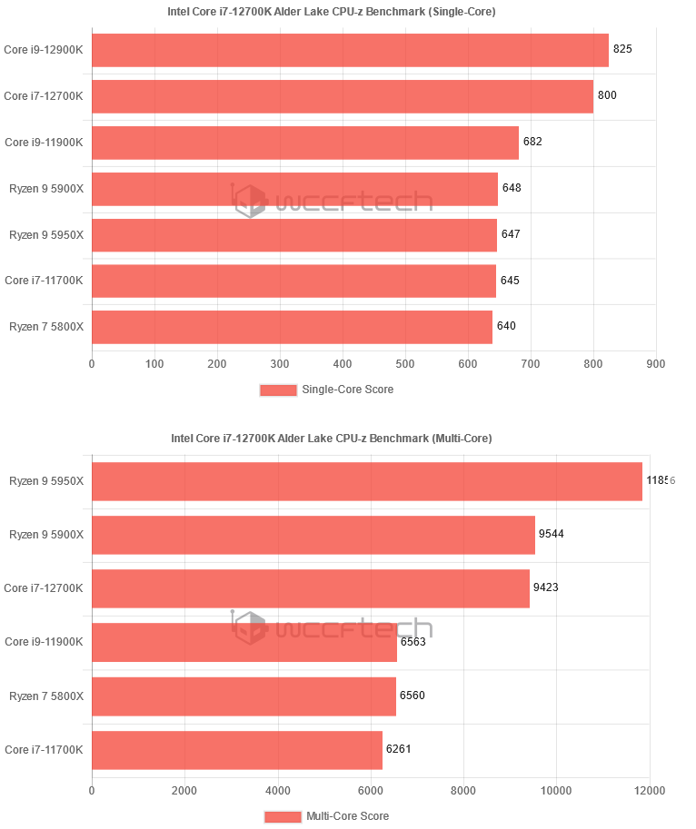 英特尔的Core i7-12700K Alder Lake CPU已经在CPU-Z基准测试中被测试,据称比基于英特尔的Rocket Lake和AMD的Zen 3处理器阵容的最快8核CPU快45%。TUM_APISAK在Twitter上发布了CPU-Z基准测试结果,显示英特尔酷睿i7-12700K在单核测试中得到800.2分,在多核基准测试中得到9423.2分。