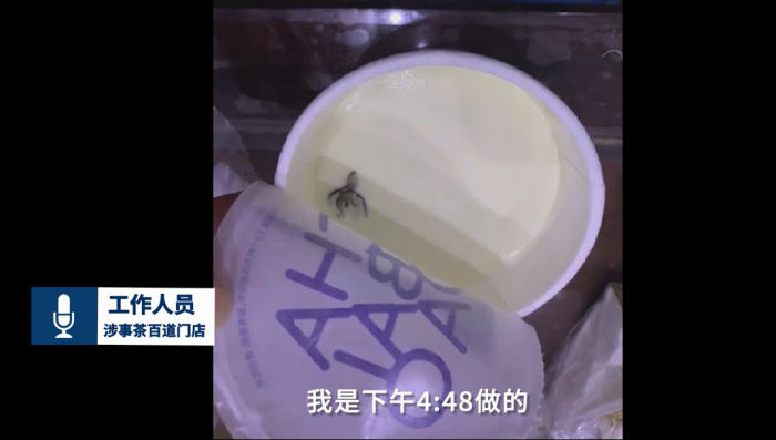 涉事茶百道门店店员对媒体回应称,在饮品制作过程中并未发现蜘蛛,顾客是收到饮品数小时后才向商家反映。