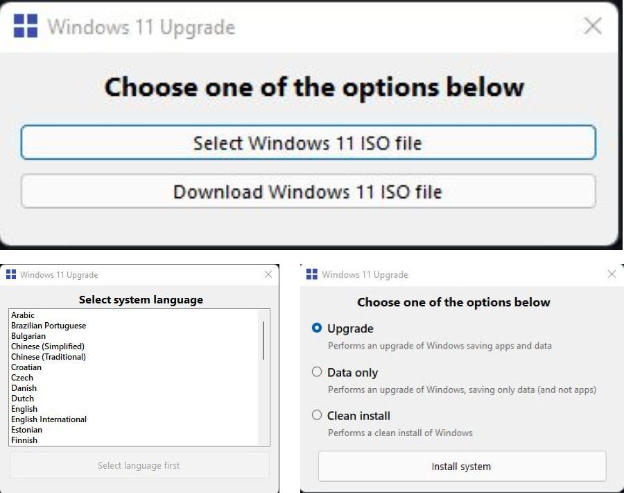 在升级过程中你可以选择是否要执行升级并保存应用程序和数据,只保存数据而不保存应用程序来安装 Windows 11,或者只是使用下载的新操作系统 ISO 自动执行清洁安装。