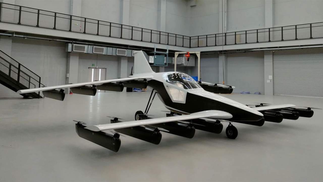 Mk-5是一种轻型飞行器,为支持200磅以下的飞行员而建造。它有一个前翼和一个后翼,每个都装有八个推进吊舱。16个推进吊舱中的每一个都有一对垂直升降旋翼在翼面的前面和后面,使飞机共有36个升降风扇。