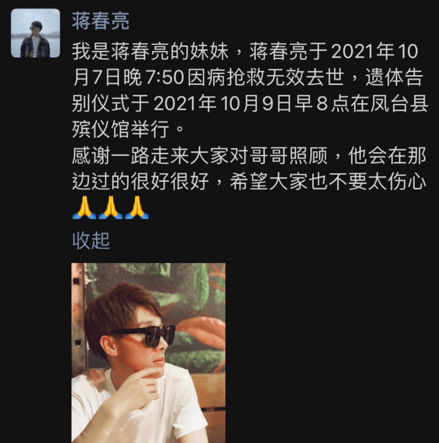 得知这一消息的网友们也纷纷在评论区底下留言,逝者安息,蒋春亮导演一路走好,表达对他的悼念,还有不少网友感慨蒋春亮年纪轻轻,就这么去世了实在是令人惋惜。