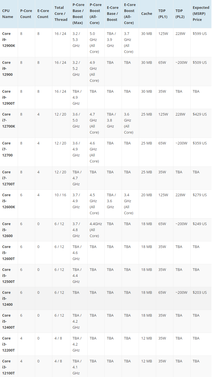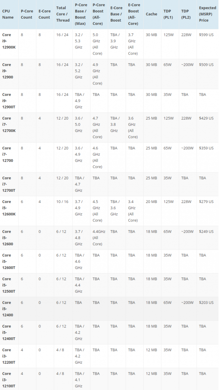 根据曝光信息,12代酷睿更入门还会有i3-12200T、i3-12100T,均为4核心8线程,但是这种35W低功耗版主要针对OEM,很少零售。至于是否有标准版的i3-12000系列,尚不清楚。