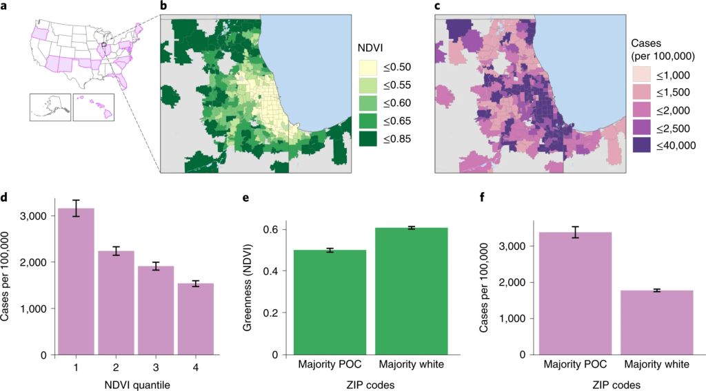 据报道,到目前为止,美国疾病控制和预防中心仍将新冠肺炎在不同人群中的感染与缺乏医疗保健、工资差距、住房因素等联系起来。不过,旧金山河口研究所、大自然保护协会以及伊利诺伊大学的新研究表明,较少接触大自然也可能成为人们感染新冠肺炎的诱因。