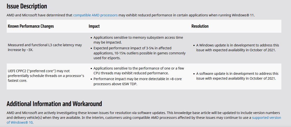 其次,微软已经修复了锐龙 CPU 的 L3 缓存延迟问题,该公司计划在 10 月 19 日的 Windows 11 更新包中提供该补丁。