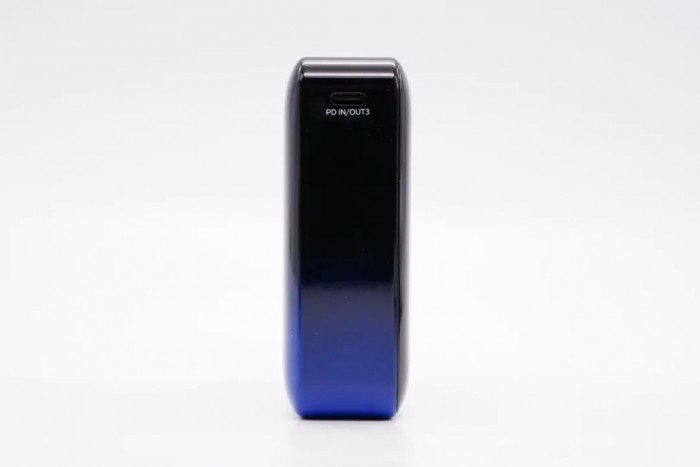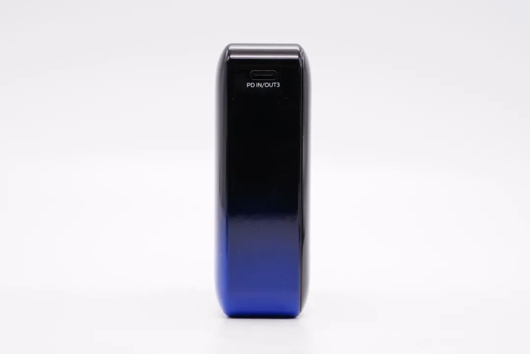 移动电源的正面和侧面均为渐变亮面。