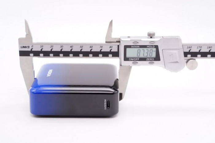 这款移动电源的宽度约为 87.2mm。