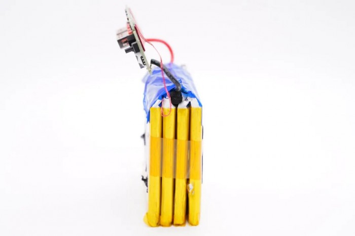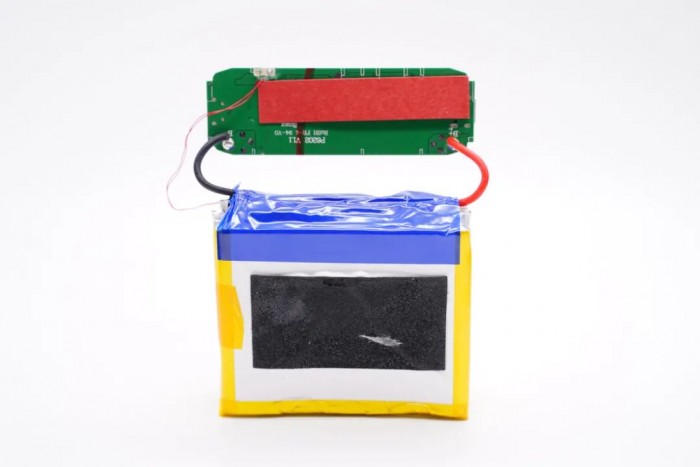 采用的是四块锂聚合物电芯并联组成的电池组。
