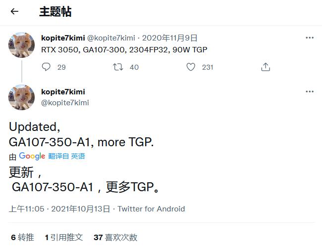 与笔记本电脑上的 RTX 3050 Ti 相比,这是一个很大的升级,后者的 GA107 GPU 有 2560 个内核,128 位总线接口上只有 4GB 内存。缺点是,该卡还将具有更高的 TGP,而移动版的最大功率为95W。因此,我们很可能会得到100瓦+的Ti变体。