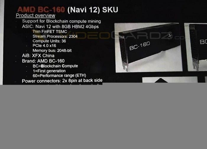 前不久刚刚表态对挖矿业务没有什么兴趣的AMD,私底下已经在“暗度陈仓”了?爆料好手贴出的图片显示,基于7nm Navi 12核心打造的AMD BC-160矿卡现身,讯景设计,外形比较简约素雅。