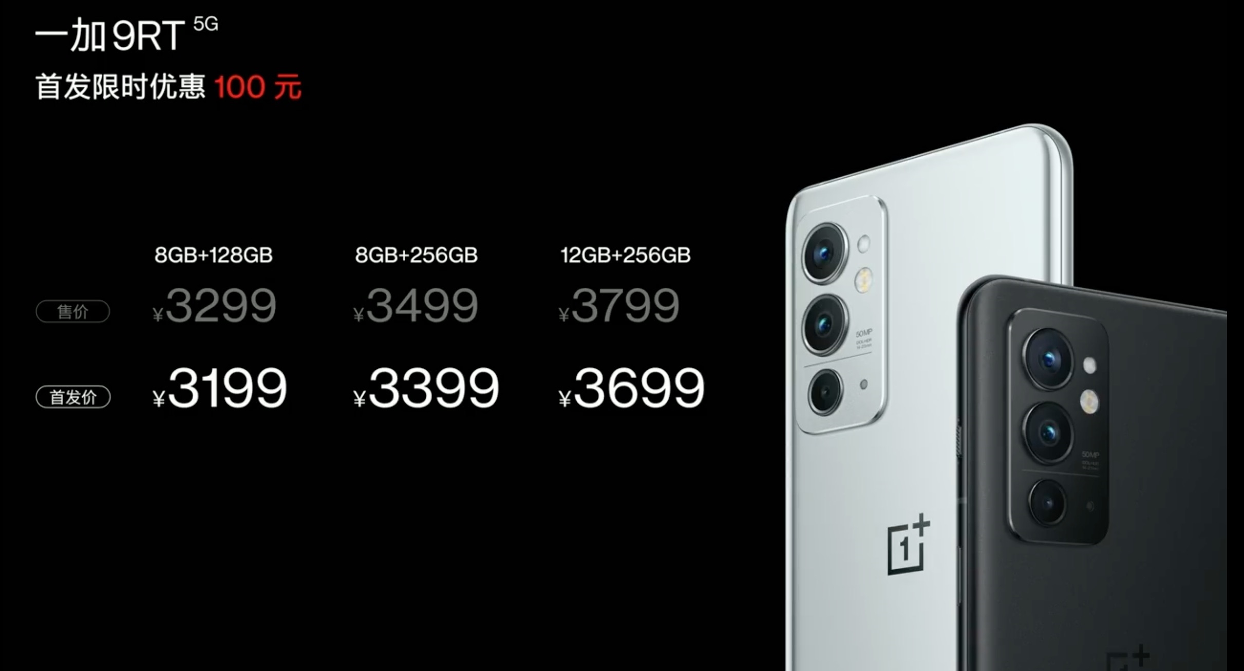 至于大家关心的售价,一加9RT 8+128价格是3299元、8+256是3499元、12+256是3799元,而这三个版本首销都优惠100元,其会在10月13日20:40预售,10月19日10:00首销。