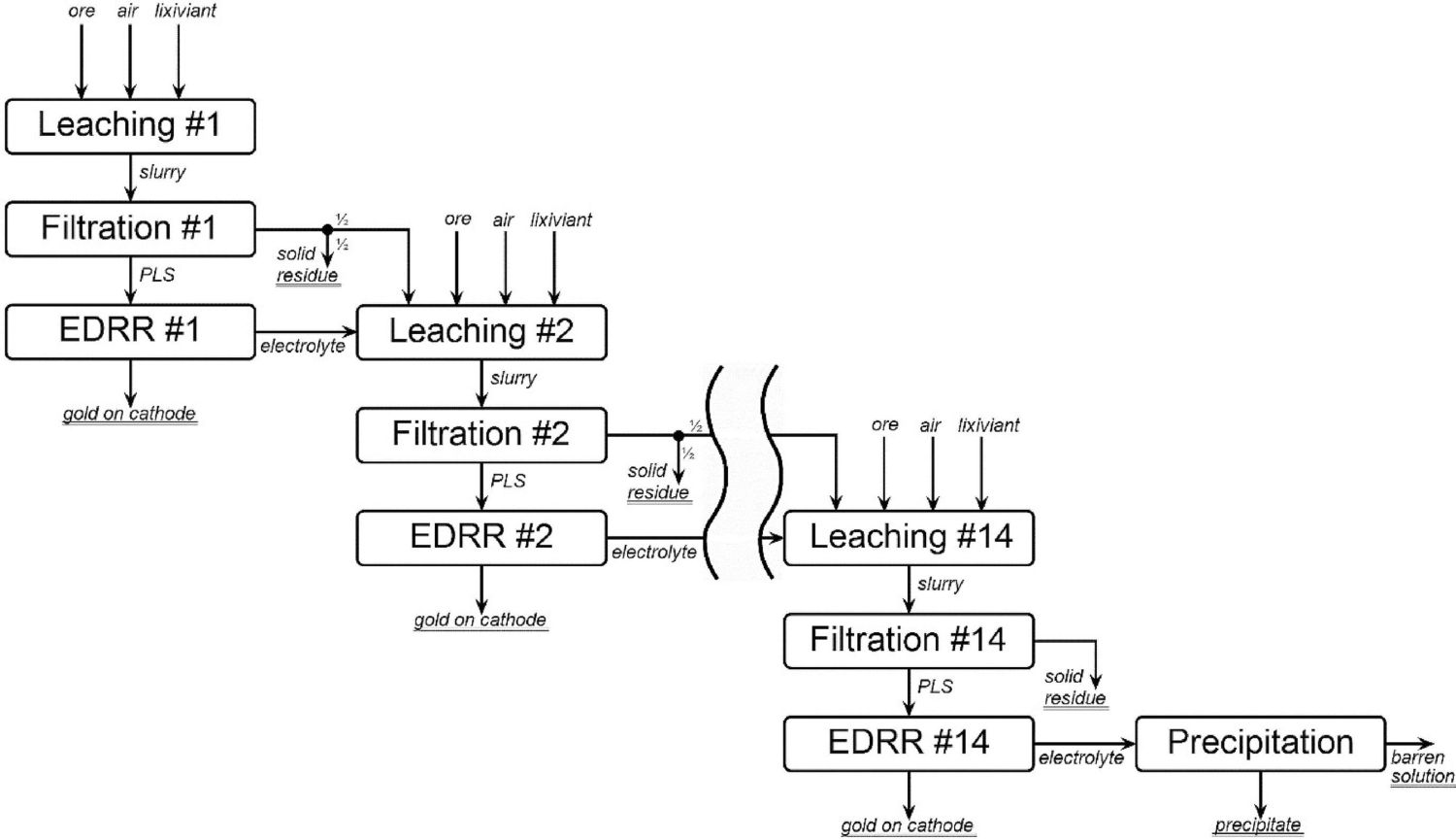 传统上,一旦金矿被从地下开采出来,它就会被粉碎成粉末,并在一个叫做浸出(leaching)的过程中通过一系列的罐子。然后用氰化物将金从矿石中分离出来,进入浸出溶液。