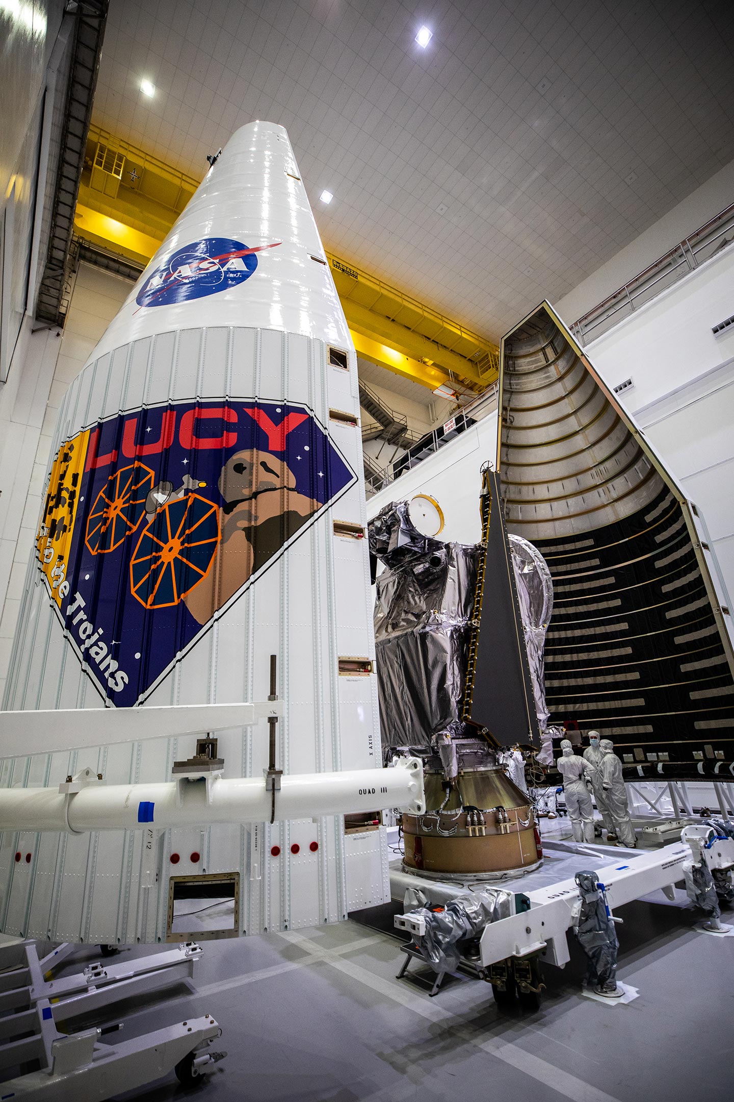 露西航天器被塞进运载火箭整流罩中,整流罩像一个蚌壳一样围绕着它。它的第一次发射尝试定于美国东部时间10月16日上午5点34分从佛罗里达州卡纳维拉尔角发射。