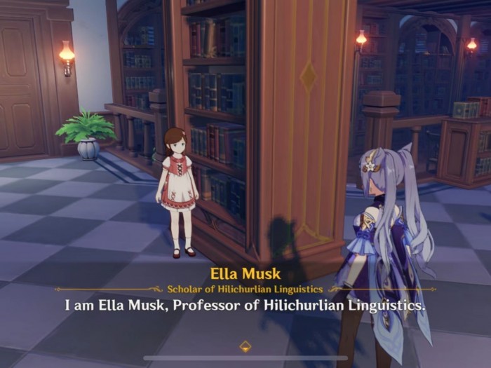 该账号引起《原神》官方注意,主要与《原神》游戏中蒙德地区有一位名叫Ella Musk的游戏NPC有关。Ella Musk是一名“丘丘人语言学者”,当游戏中的玩家风卷残云般扫荡一个又一个丘丘人营地时,Ella Musk却在致力于研究丘丘人语言,希望人类和丘丘人能够彼此理解共同相处。