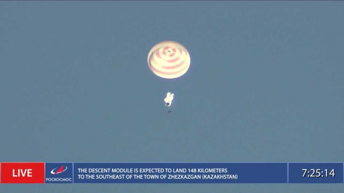 着陆后,搜索队守住返回舱,然后帮助三名宇航员离开“联盟”号。当场体检后,专机会把他们带往莫斯科州。下周二(10月19日),这个由影视工作者组成的宇航员小组将召开自己的新闻发布会。