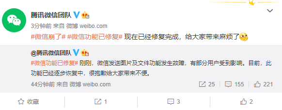UPDATE:上午11点55分,微信宣布修复完成。