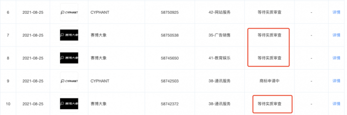天眼查信息显示,赛博大象为北京一点网聚信息技术有限公司在8月25日注册的商标,目前处于实质审查状态。