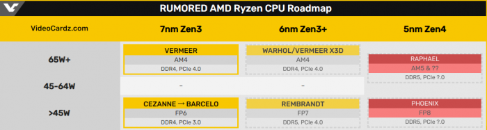 Zen3之后,AMD的处理器产品策略变得扑朔迷离起来。就目前的爆料来看,明年1月CES上AMD将推出基于6nm Zen3+的Rembrandt(伦勃朗)APU产品,桌面端则是Warhol(沃霍尔)和Vermeer 3D缓存版,前者支持DDR5内存,后者则是AM4接口、且仍旧是DDR4。