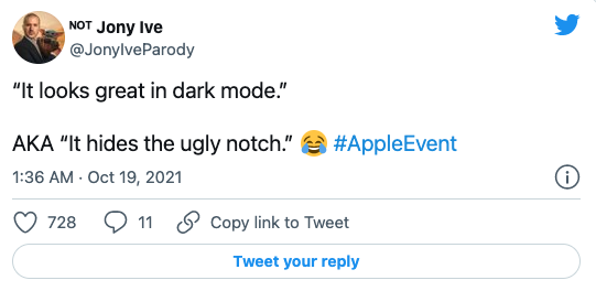 不过,新MacBook Pro的“刘海”设计立即在社交媒体上引发了外国网友的嘲笑。一些用户直接表达了厌恶之情,把它称之为“丑陋的刘海”。