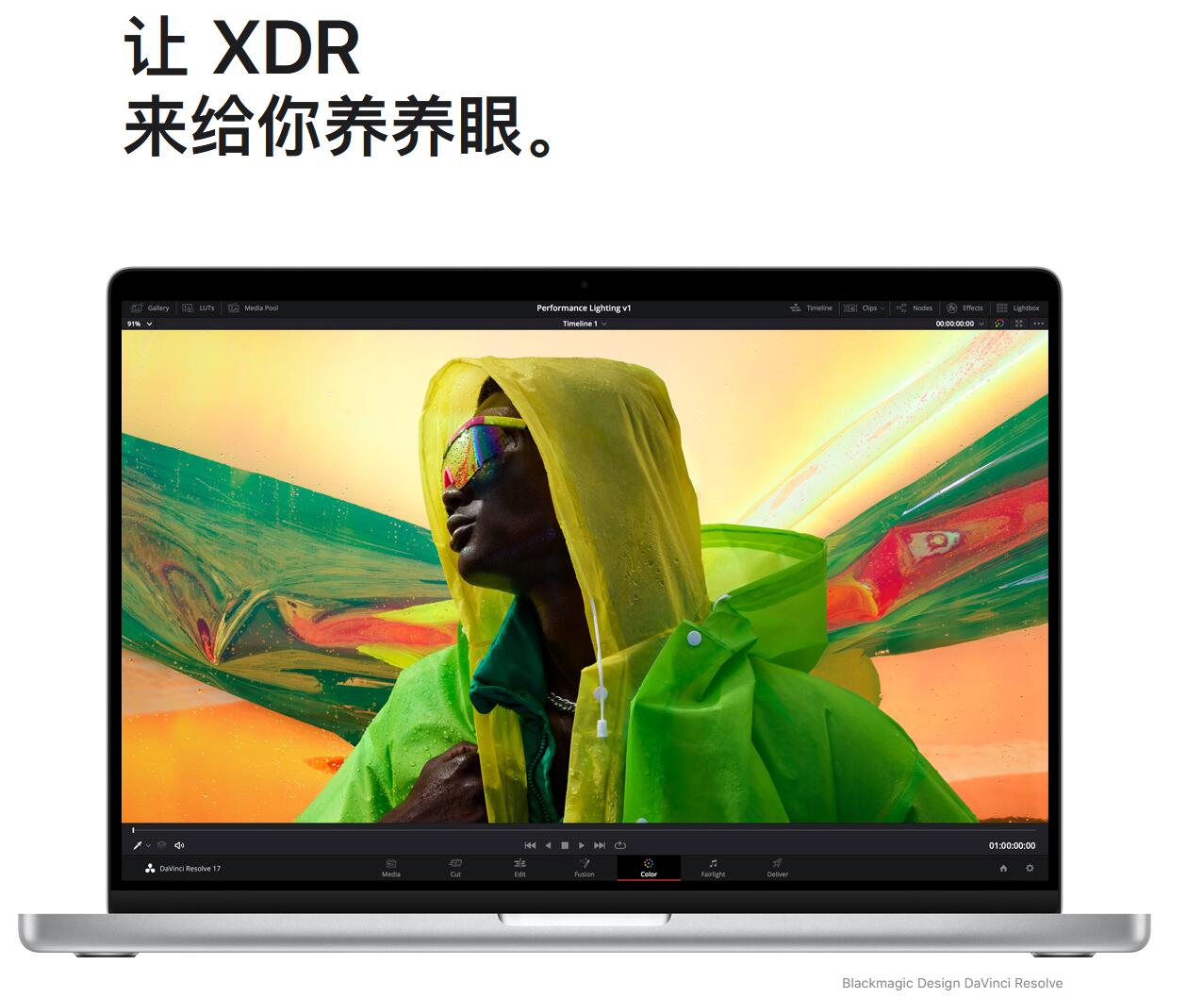 这是 Mac 笔记本电脑上第一款有着极致动态范围和 1000000:1 对比度的显示屏。照片、视频和游戏中的 HDR 内容在这样的屏幕上呈现时,亮部耀眼夺目,暗部细节惊人,色彩也格外鲜活逼真。每块显示屏在出厂时都经过严苛校准,并针对 HDR 调色、摄影、设计和平面印刷预设有不同的专业参考模式。
