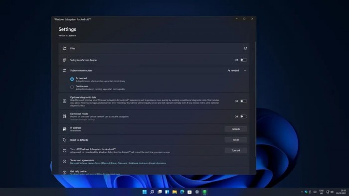 在后台也会安装 Windows Subsystem for Android,这是支持在 Windows 11 上运行 Android 应用的核心技术。