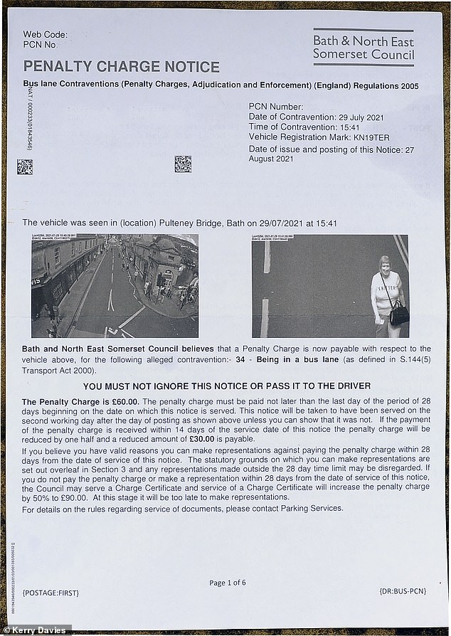 但是,当他和他的妻子保拉仔细看了一下照片上的"证据"时,他们不禁哑然失笑。大卫和保拉从巴斯和东北萨默塞特委员会收到的罚款信,由于他们没有在30天内支付,罚款已经从60英镑增加到90英镑。