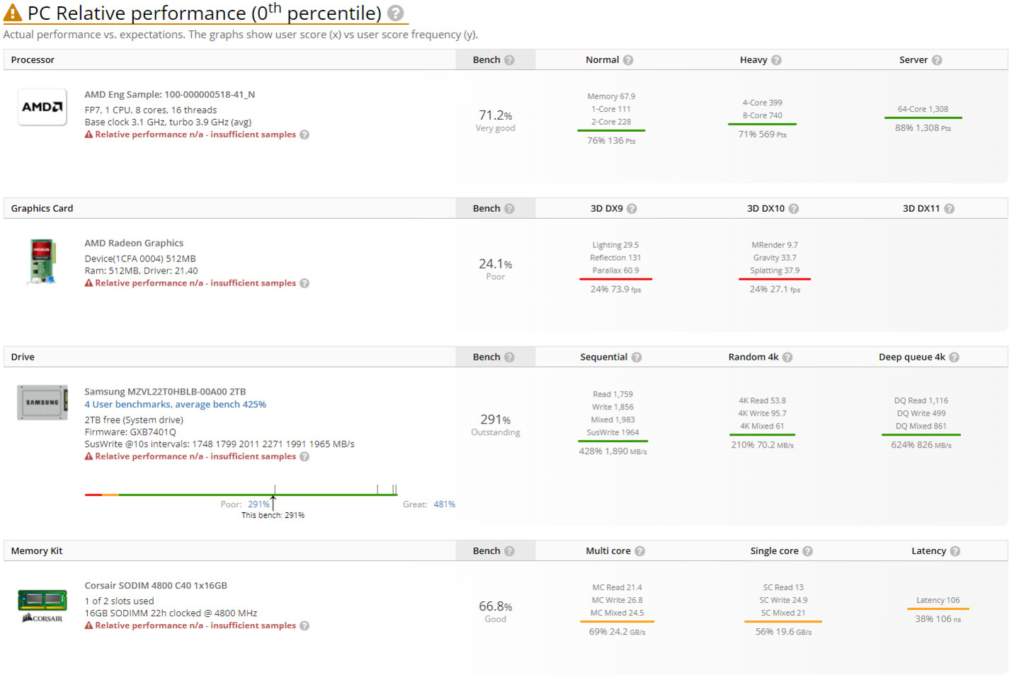 来自UserBenchmark测试的信息还显示了特定的 FP7 插座,据推测这是为专门为 Ryzen 6000 系列制造的最新平台。列出的 CPU 没有具体的名称或指定,除了目前正在使用的代码“100-000000518-41_N OPN”。如果猜测接近实际情况,我们有可能看到 Ryzen 7 6800H 或 Ryzen 9 6900HS 或 HX 型号。检测到的是它携带 8 个核心,16 个线程。