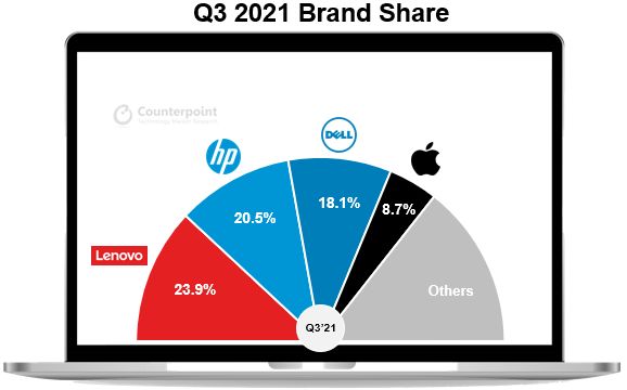 2021 年第 3 季度,全球个人电脑出货量为 8420 万台,连续 6 个季度出现同比增长。尽管有持续的组件短缺和其他供应限制,这仍然是个好消息。然而,本季度 9.3% 的环比增长意味着自 2020 年第 3 季度以来连续 4 个季度的双位数环比增长后,个人电脑出货量的势头有所下降。此外,大多数 OEM 和 ODM 没有看到订单(需求)和出货量(供应)之间的差距缩小。