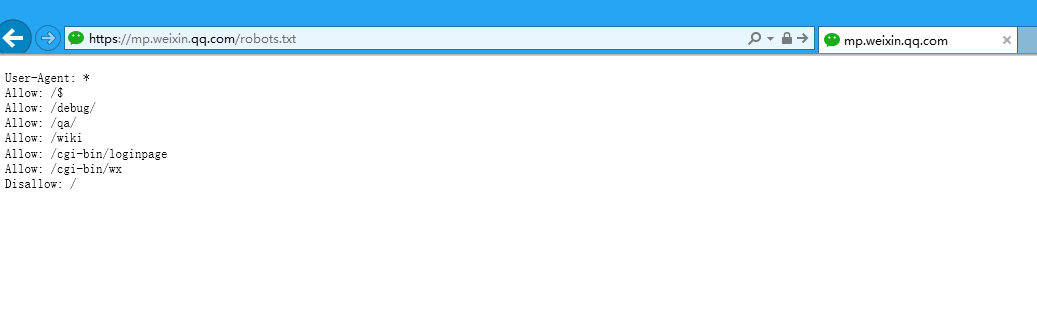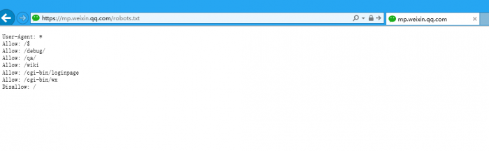 据此前爆料,微信此次的意外开放式因为微信公众号官网的robots.txt被删了,这个文件是Robots协议(也称为爬虫协议、机器人协议等),全称是“网络爬虫排除标准”(Robots Exclusion Protocol),网站通过Robots协议告诉搜索引擎哪些页面可以抓取,哪些页面不能抓取。