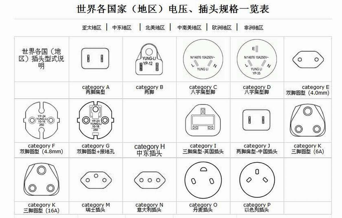除了不同国家地区当地电网有区别外,它们采用的插头规格都会有所区别,如果插头不兼容就算电压适用也无法插入。