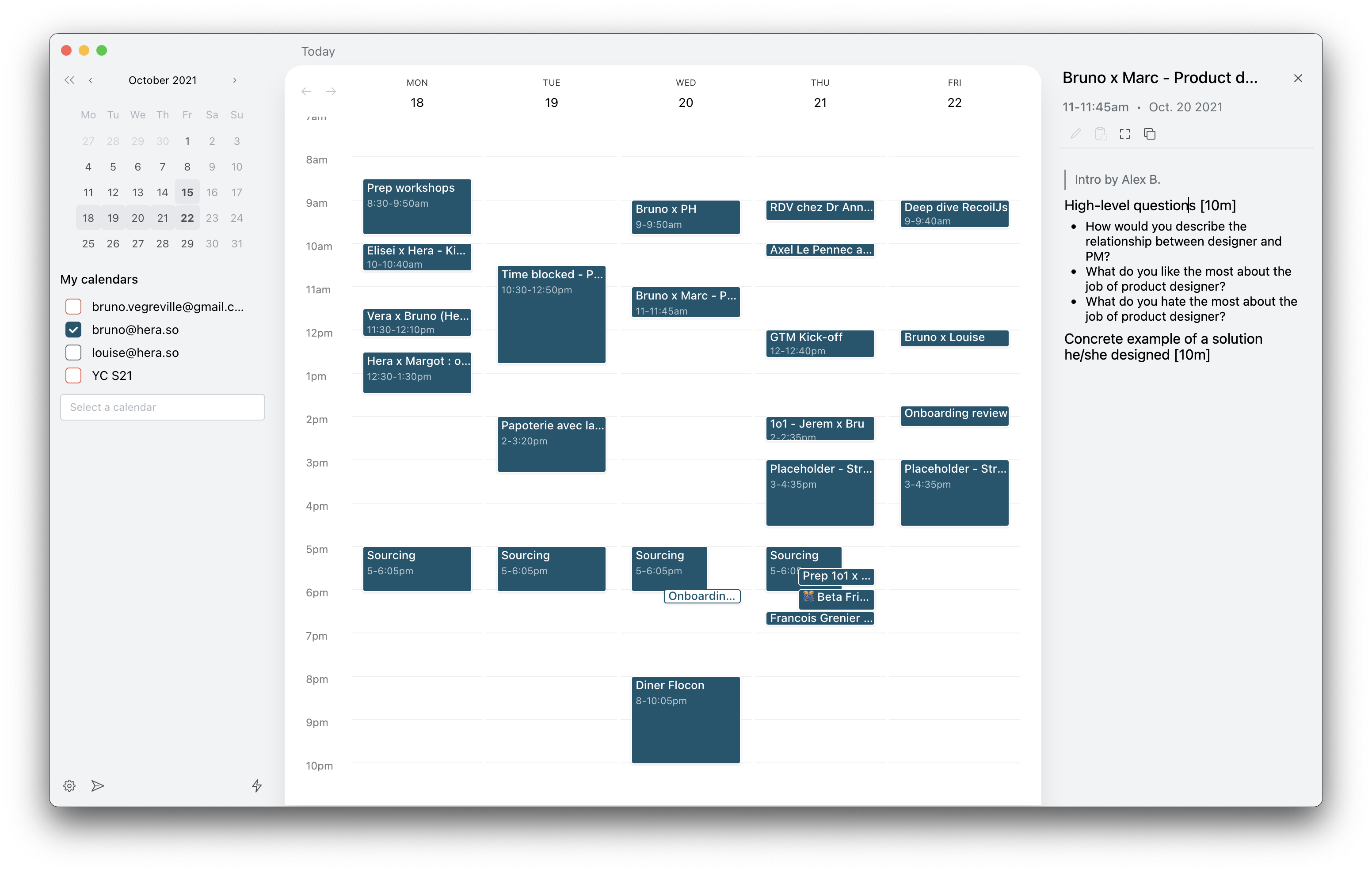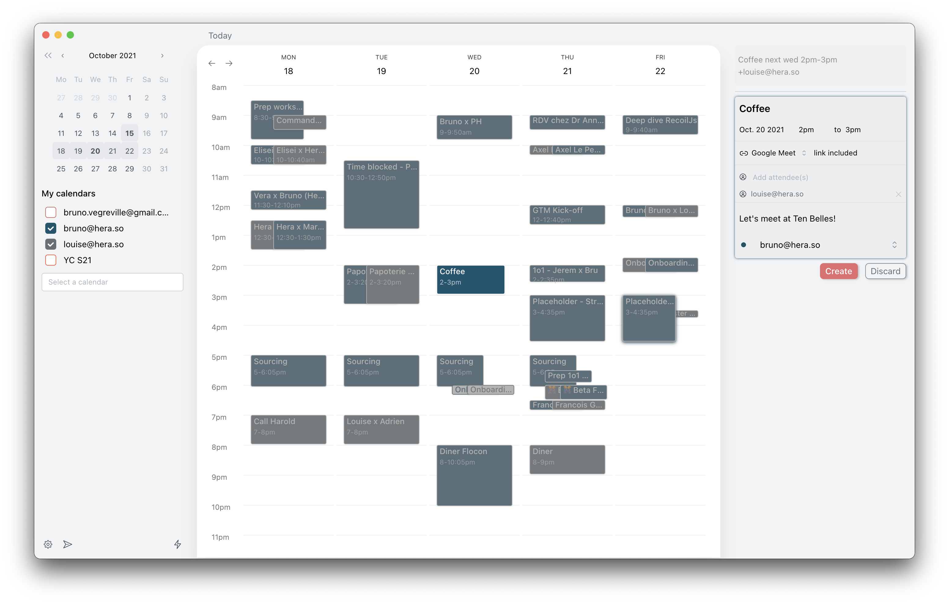 比如通过双人协作,以实现更好的日程安排。你还可以想象直接在日历中提及其它 Hera 用户,以获得会议的反馈。