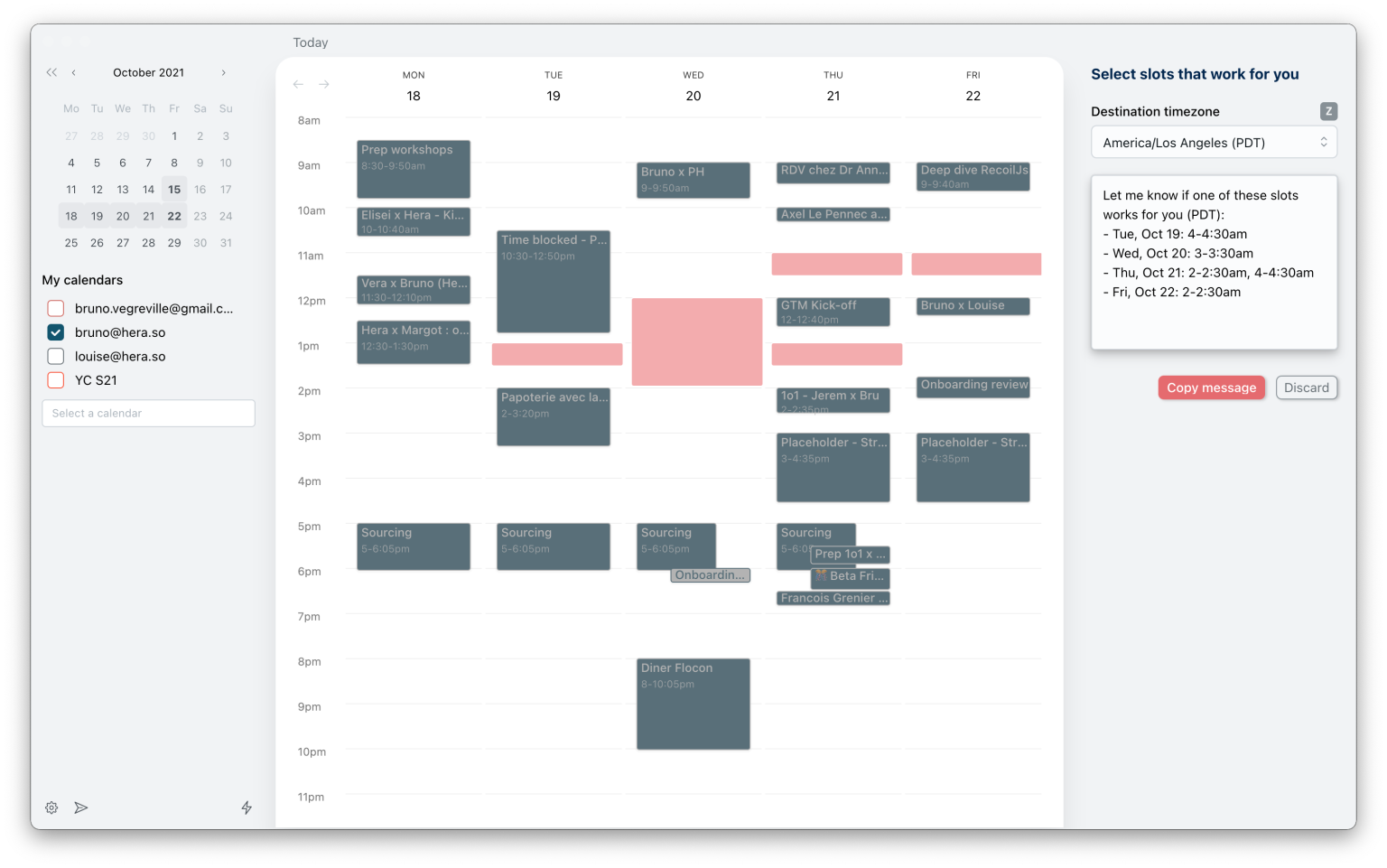 首先,Hera 可帮助安排会议、并做好相关准备。只需点击几下,即可在多个选项中进行选择。
