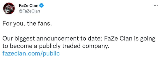 FaZe在声明中表示,这为了是粉丝们的举动,希望为更多的粉丝投资公司打开大门。具体来说,它表示,它现在是,也希望未来继续作为一个“为Z世代和千禧一代创建的数字内容平台”。