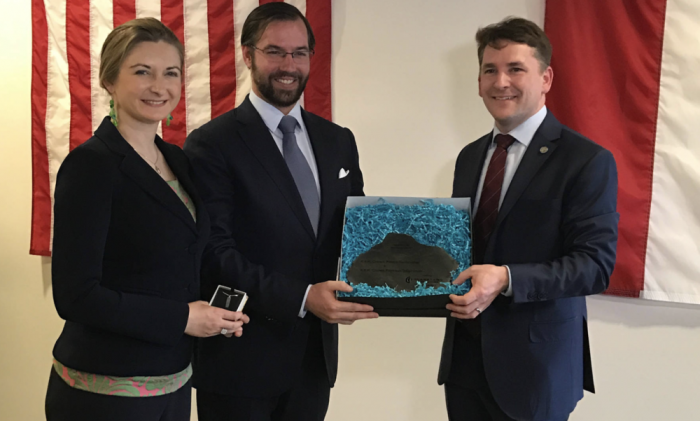 在2016年就颁布太空资源法,非常支持太空开发的欧洲小国卢森堡赠予Planetary Resources大约1300万欧元(左边二位为卢森堡王储,右一为Planetary Resources首席执行官Chris Lewicki