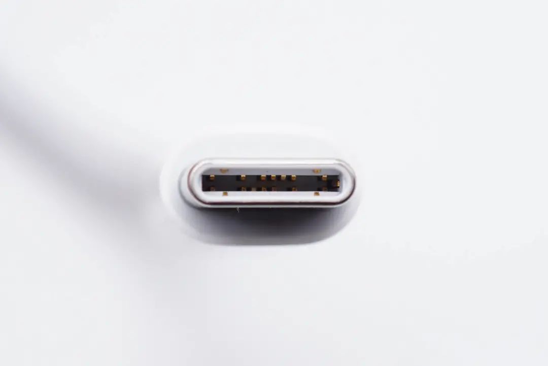 端面外围是吸磁的金属材质,居中设置了5个pogo pin,和USB-C接口一样,MagSafe3也支持正反连接。