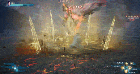 因为设计问题,仙剑七的连招是根据左键 ( 轻攻击 )和右键 ( 重攻击 )的不同组合来完成的,在滞空时我们只能控制角色进行这种连招,可是它的连招数量太少了,没几分钟我就放弃了进行 “ 空连 ” 的想法。