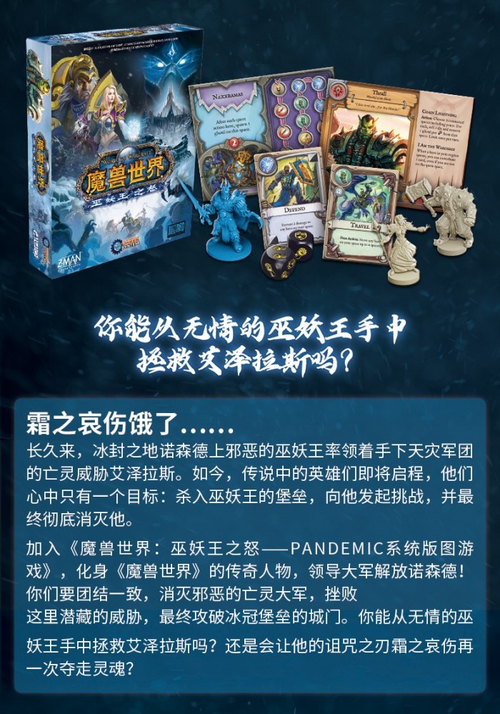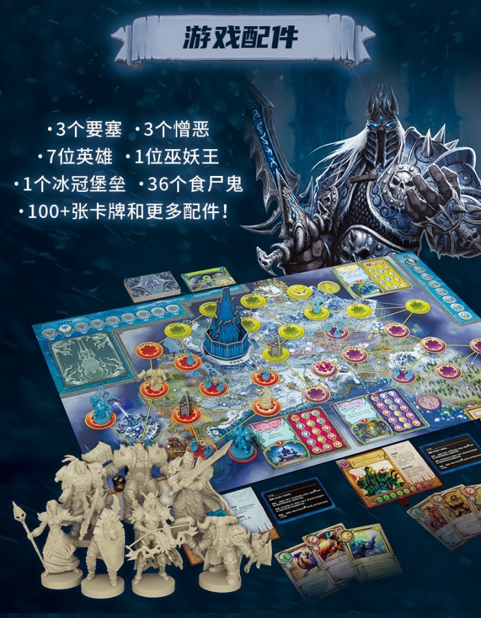 近日,暴雪官方旗舰店上架了《魔兽世界》巫妖王之怒官方简体中文桌游,售价568元,双十一售价508元,现已开启预售,可以容纳1-5游玩,配件包括:100多张卡片、36个食尸鬼、1个巫妖王、1个冰冠堡垒、7位英雄、3个要塞、3个憎恶。