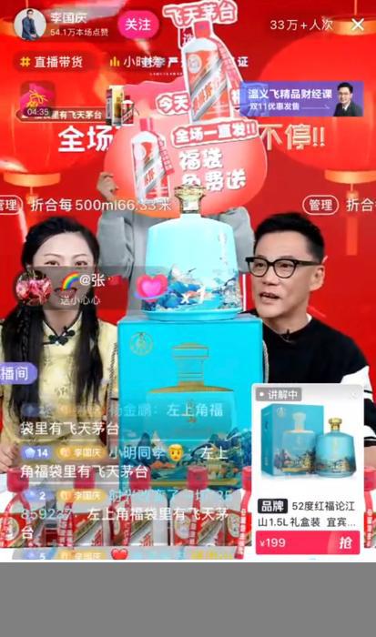 李国庆直播卖酒。截图