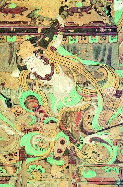 敦煌第112窟“反弹琵琶”局部 资料图片