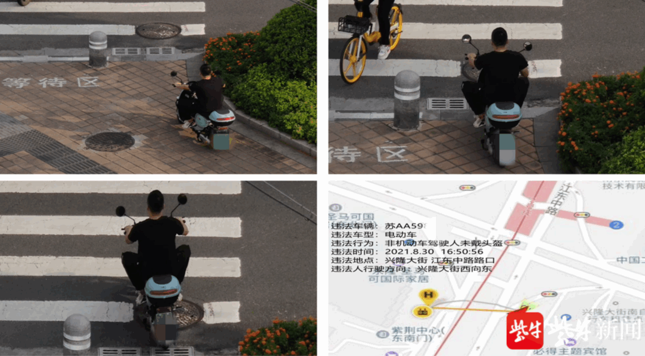 此外,南京市民陈女士,已被抓拍到8起电动自行车违法驾驶,其中6起是骑车未佩戴头盔,2起逆向行驶,共缴纳罚款310元。
