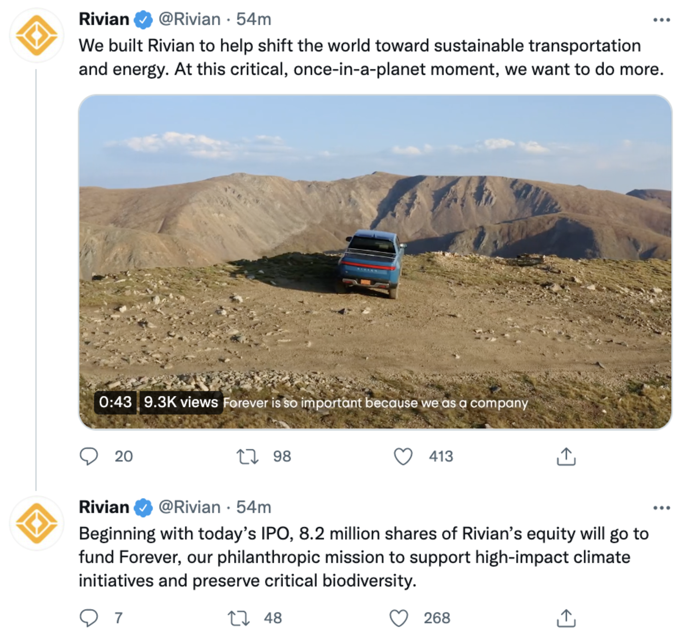 毫无疑问,随着Rivian成功登陆纳斯达克,并发行1.35亿股股票、筹资近120亿美元的事情尘埃落定,这家被誉为“特斯拉杀手”的造车新势力算是成功渡过了危险期。当然,作为美国有史以来的第七大IPO,Rivian确实值得大书特书,要知道刚破万亿美元市值的特斯拉当年IPO市值也不超过20亿美元,募资仅为2.26亿美元。