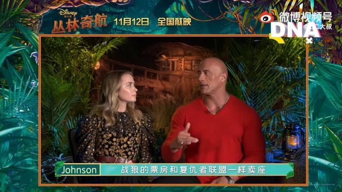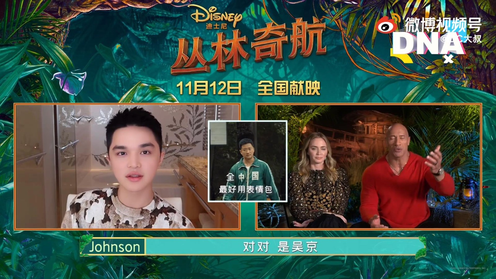近日巨石强森在宣传电影《丛林奇航》时,被问及有没有想合作的中国演员。巨石强森表示想和吴京合拍一部电影,还透露自己之前和吴京有过会面。巨石强森在被问到最想合作的中国演员时,他跟女搭档说:“我和你说过,你还记得吗?吴京非常地棒”。