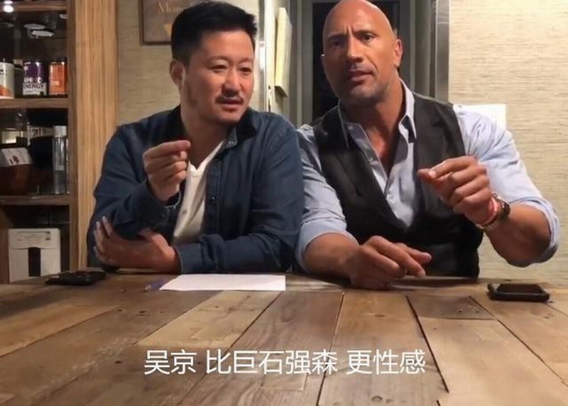 接着强森又开始面对屏幕夸赞起吴京来,还表示之前吴京来过一次洛杉矶,两人有见过面,并且从那时候开始,强森就想和吴京合作拍摄一部电影了。